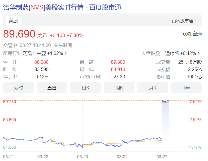 受此消息影响,诺华股价当天大涨7.3%,市值增加130亿美元。