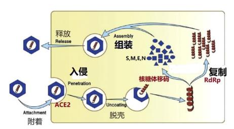 病毒生命周期中最为重要的靶点:第一是入侵,第二是复制,第三是组装与释放。