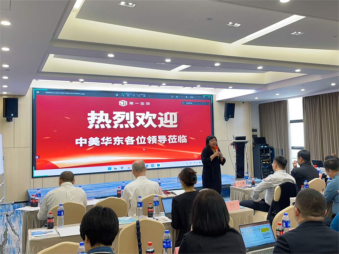 活动开始,简一生物对中美华东制药有限公司各位同事的到来表示了热烈的欢迎和感谢,随后中美华东付玮总经理在致辞中表示很荣幸能来到简一生物参观交流,对后续的合作充满信心,希望双方能够实现合作共赢。
